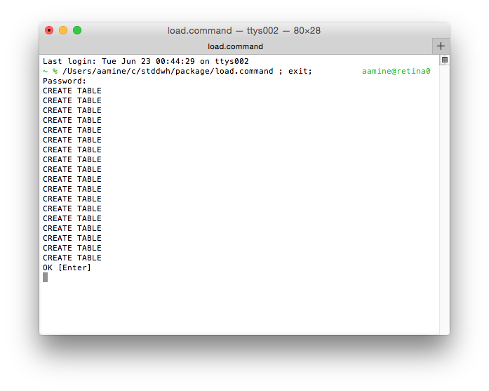 以上でロード処理が実行されます。 次のように「OK [Enter]」と表示されたら処理は正常に終了しているので、 ウィンドウを閉じて構いません。