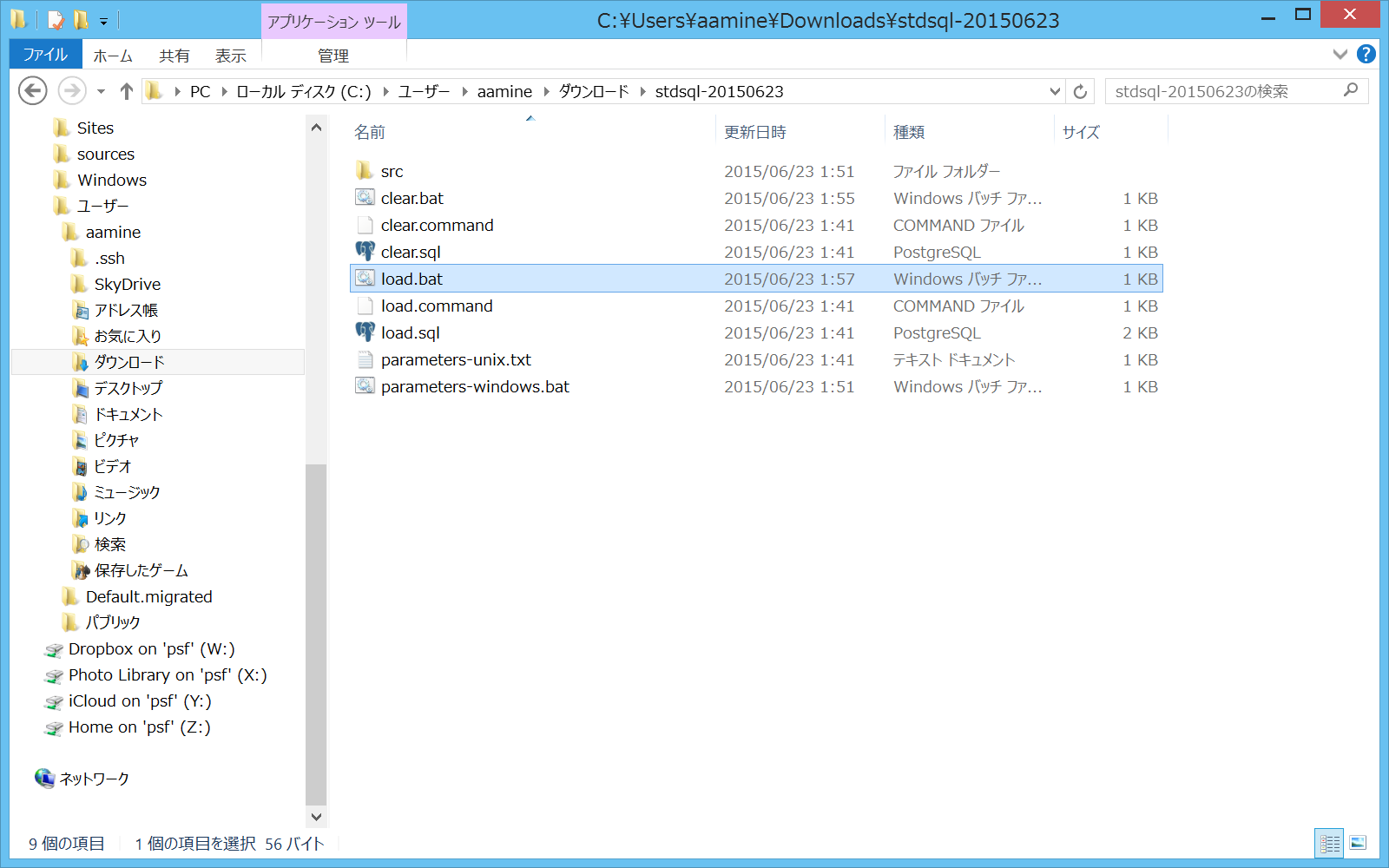 「stdsql-日付」フォルダの中の、 「load.bat」ファイルをダブルクリックして実行してください (load.commandではないので注意)。